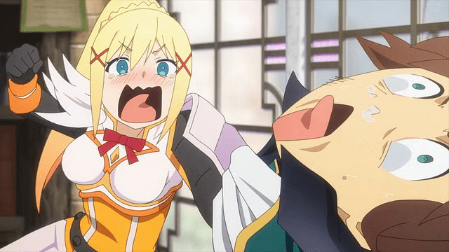 So, we find out the reason for Darkness’s departure, and Kazuma uses special powers from the previously useless Aqua to impersonate anyone he wants. He first goes and performs a photoshoot with some guy wearing a bra and panties, which was about as pandering as any scene as I can remember (not that there’s anything wrong with that!). Then he goes and meets up with Darkness and hilarity ensues.