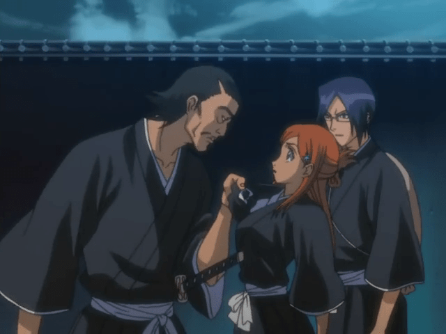 Anyway, Mayuri proves to be an utter piece of crap to his lieutenant Nemu, and obviously to Uryu too – which is a little ironic, given what’s going to happen when everything gets retconned for TYBW. Gotta be honest, I’m rooting for Uryu now, even though I’ve been trained to cheer against him in TYBW – wait a minute, that’s what I’m supposed to do! You mean Bleach has actually made me cheer for the hero and root against the villain? Wait a minute, you can’t do that to me!