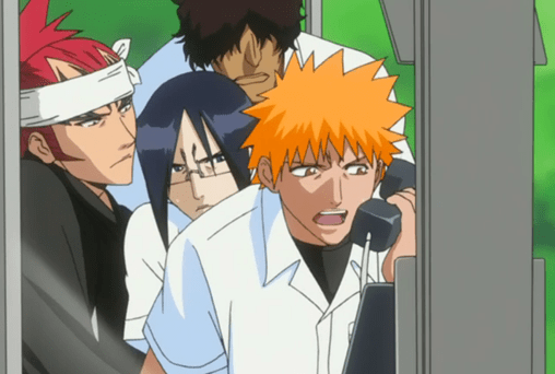 So! Ichigo & pals are now out to look for Orihime. Renji starts getting some calls on his soul phone and hears a voice that sounds not too different from Yachiru’s. The four of them have to play a “game” with the voice, which means running all over the place. After wasting an episode doing that, they finally reunite with Orihime – only to find that her body is possessed. To top it off, Chad gets kidnapped as well.