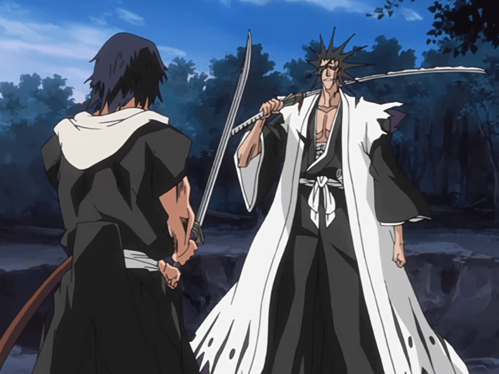 Maki fights against Kenpachi, and they exchange more “You haven’t changed at all” statements than they actually do sword blows. This battle, which I remember for being great from my original watch, is still pretty good, but not as good as it was back then. Why not? Because back then, I was so desperate for Bleach to be good again that I took anything as being a positive. Now, I’m used to disappointment from Bleach and don’t expect anything great from it. Still, this battle is awfully good.
