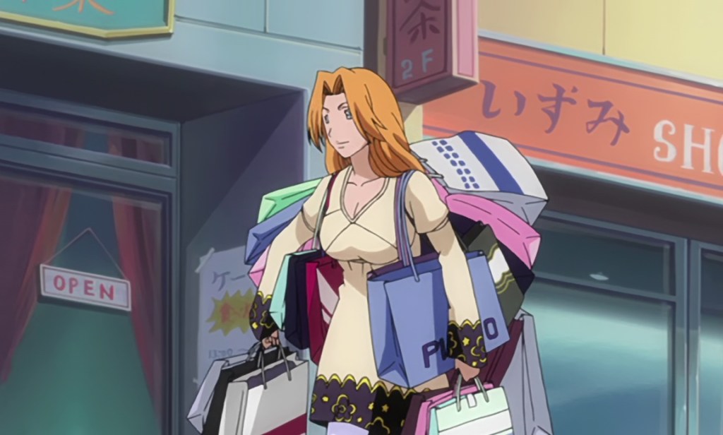 Yes, we really have an episode of Bleach where Rangiku has a fashion show. She decides to go off shopping, and as she does, she picks out all sorts of clothing and tries it on. But when she goes into one store where there’s an ocarina of sorts, she notices that it starts making a very strange noise – kind of like what you hear at the beginning of Michael Jackson’s “Man in the Mirror.” Then Hollows appear.