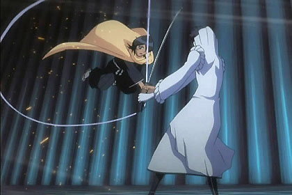 Rukia comes face to face with an Arrancar which takes on the form of Kaien Shiba. Everything about him seems genuine. He even has a story to back him up. It’s enough that Rukia finally trusts him, that he’s going to betray Aizen and that he needs her help. Then, suddenly, swipe – and Rukia’s face is cut.