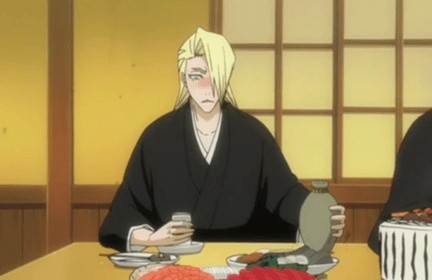 This episode is devoted to exploring how useless Squad 3 Lieutenant Izuru Kira really is. He starts out the episode unable to corral a cat, then suffers criticism from people in his squad who think the new guy Kibune deserves to be Lieutenant over him. He gets so upset that he tries to drink it away, along with fellow useless Lieutenant Tetsuzaemon Iba. Then finally he falls into a hole, where he has it out with Kibune before Captain Amagai comes to save them.