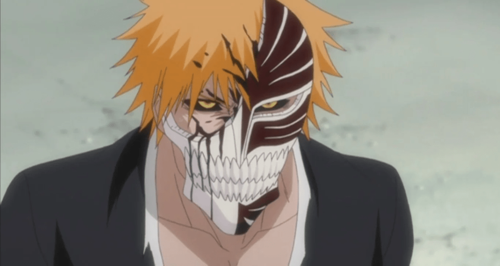 Ichigo fights Ulquiorra, who reveals his Resurreccion, then tells Ichigo that this isn’t even his final form. He has one extra transformation that no one knows about, not even Sosuke Aizen. So, Ulquiorra shows it off to Ichigo, and then to Uryu and Orihime, who have arrived on the scene just in time to become battle commentators. Ulquiorra is about to kill Ichigo as time runs out.